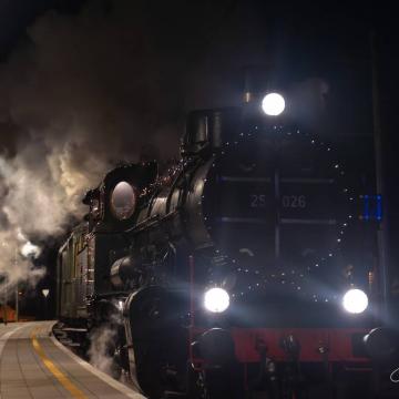 Božičkov muzejski vlak je v decembrskem času praznično okrašen zgodovinski vlak, ki razveseljuje kraje po Sloveniji. Včeraj je zapeljal tudi skozi našo občino. Fotografija je nastala na železniški postaji Laze.