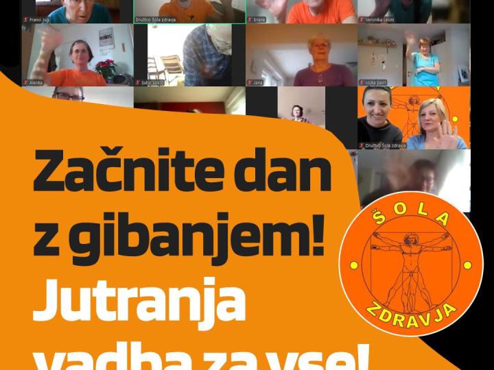 V prvih dveh mesecih leta 2026 Društvo Šola zdravja podarja brezplačno jutranje razgibavanje, ki bo potekalo preko platforme Zoom. Vadba bo na voljo od 5. januarja do 27. februarja, vsak delovni dan od 8. do 9. ure.