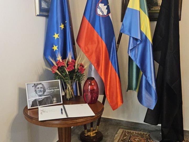 Na občini je odprta žalna knjiga ob slovesu od naše častne občanke TONČKE JEMEC. V žalno knjigo se lahko vpišete danes med 9. in 15. uro. V njen spomin smo se poklonili Željko Savič, župan občine in mag. Rok Prevc, direktor občinske uprave s sodelavci.