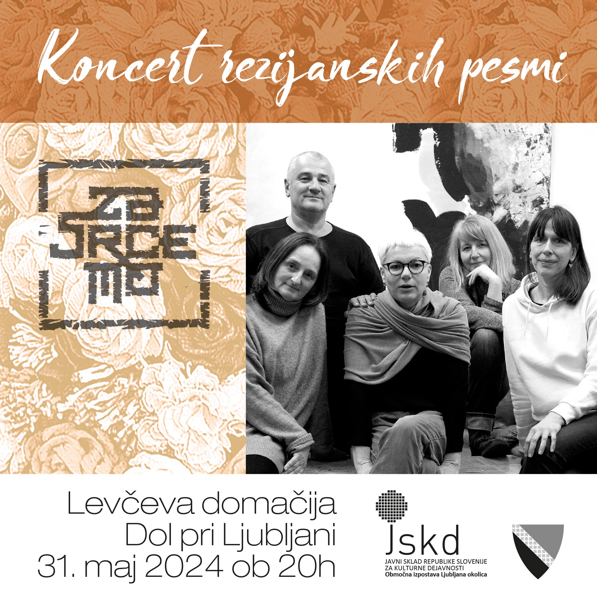 Po zaključku delavnice ob 20.uri bo koncert rezijanskih pesmi vokalne zasedbe ZA SRCE MO (Janez Fifolt, Mateja Mavri, Simona Tomažič, Valentina Praprotnik, Zvonka T Simčič)