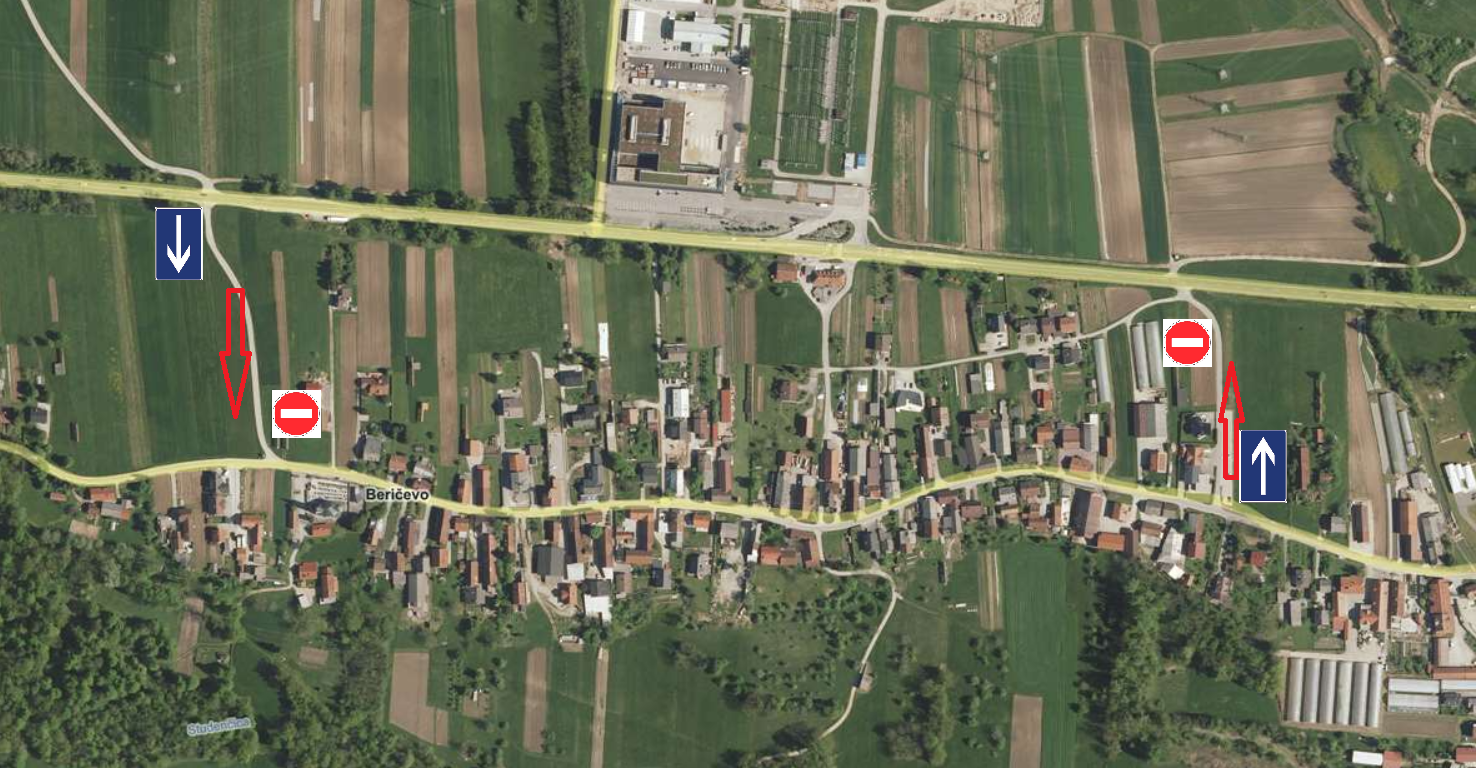 Zaradi boljše pretočnosti prometa, zaradi obvoza, uvajamo spremembo prometnega režima skozi vas Beričevo in sicer, uvedba enosmernih poti: