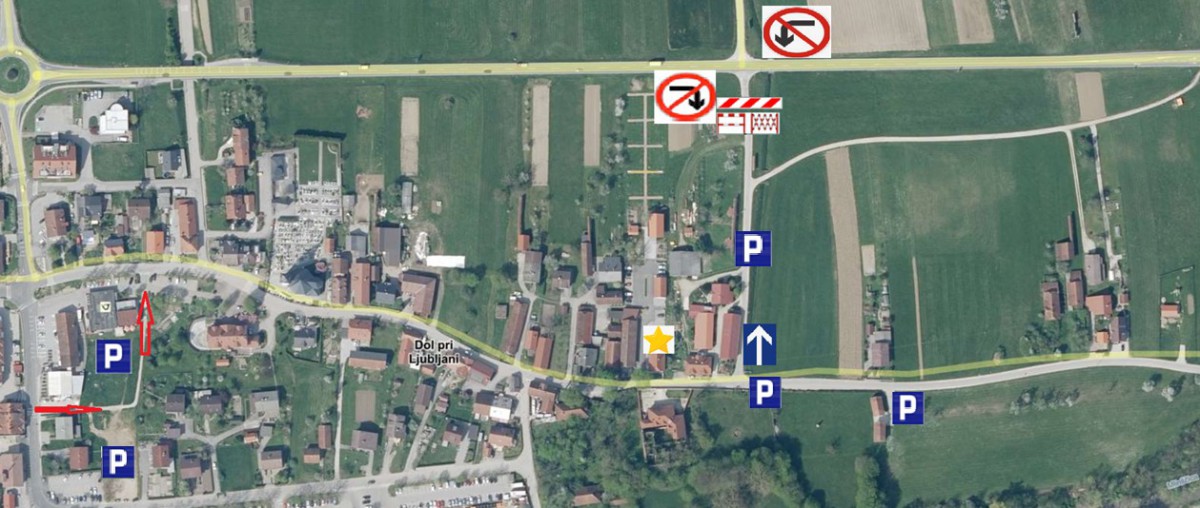 Obveščamo vas, da bo 31. marca 2026, od 16.30 do 20.00 ure, za čas dogodka VELIKONOČNA DOGODIVŠČINA na LEVČEVI DOMAČIJI spremenjena prometna signalizacija, kot je prikazano na priloženi skici.