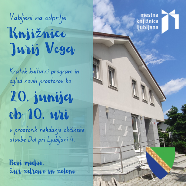 Vabljeni na odprtje knjižnice Jurij Vega, ki bo v torek, 20. junija 2023 ob 10.uri, v prostorih nekdanje občinske stavbe Dol pri Ljubljani 4.