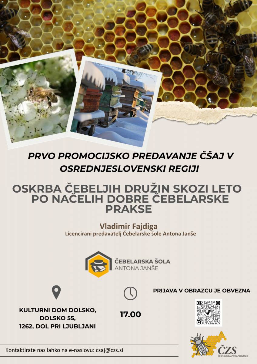 PREDAVATELJ: Vladimir Fajdiga, licencirani predavatelj Čebelarske šole Antona Janše